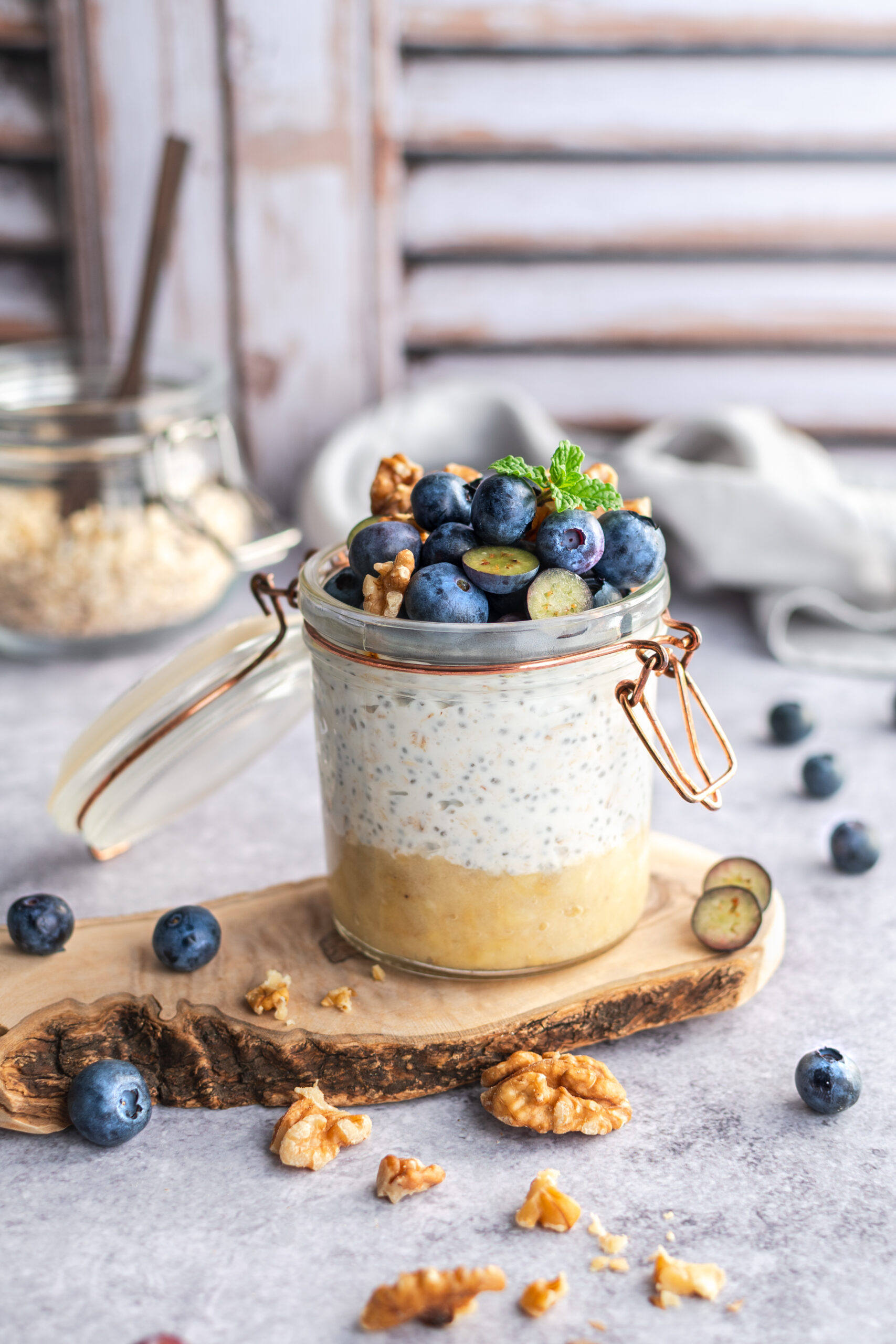 - Nocna owsianka z bananem i borówką